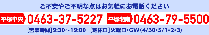 神奈川県平塚市中原3丁目18 TEL:0463-37-5227 FAX:0463-37-5232 - 営業時間